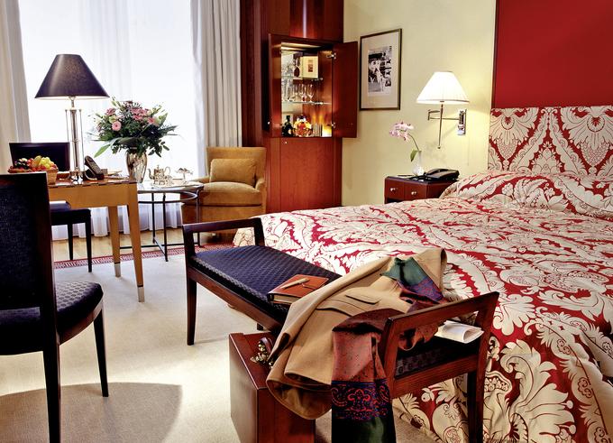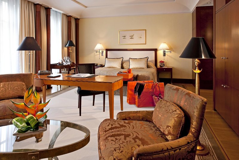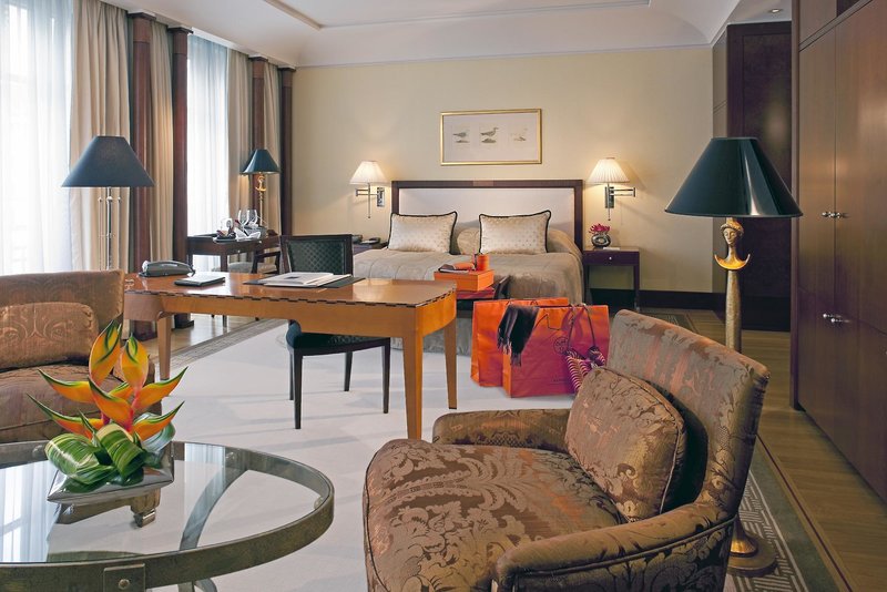 Izby: V 385 izbách a apartmánoch sa spája veľkorysosť a zmysel pre detail. Ušľachtilé materiály, tvary a farby dodajú každej izbe individuálny šarm. Mramorová kúpeľňa so samostatnou sprchou, županom, TV, telefónom, WiFi (bez poplatku), minibarom, trezorom a klimatizáciou.