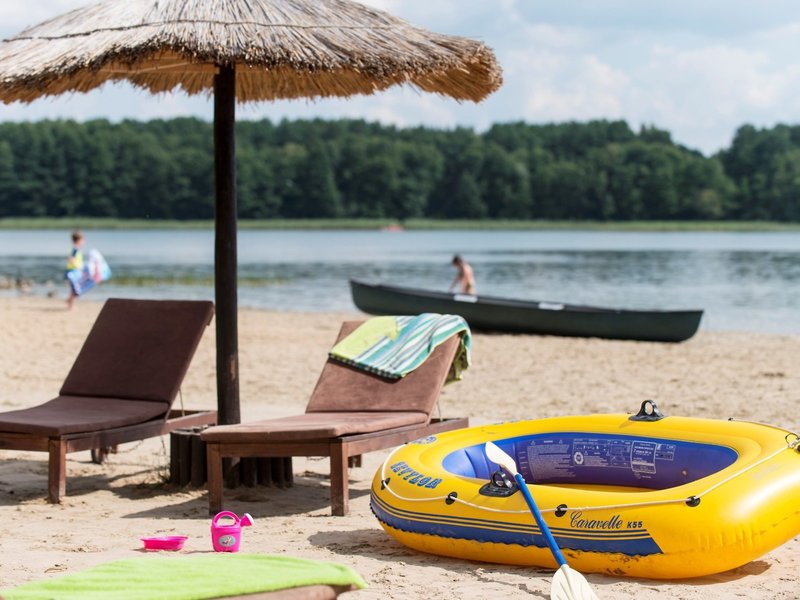 - Pláž na brehu jazera Lübbe: piesková, hotelová, verejná s vlastnou hotelovou časťou, ležadlá: za poplatok, slnečníky