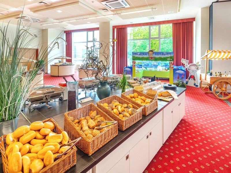 - Hauptrestaurant „Halbpensionsrestaurant“: Küche: international, regional, glutenfreie Gerichte, Kinderbuffet, Kindermenü, lactosefreie Gerichte, leichte Gerichte, vegetarische Gerichte, Buffet, täglich 18:00 Uhr - 20:00 Uhr und 07:00 Uhr - 10:00 Uhr, zwei Essenszeiten am Abend, klimatisierbar, Kinderhochstuhl, angemessene Kleidung erwünscht