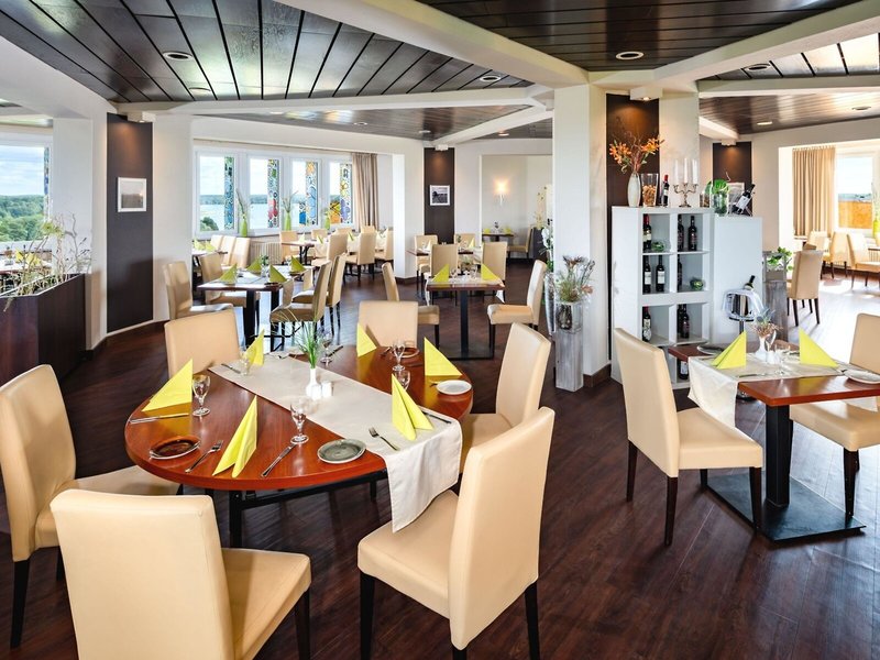 - Restaurant „Panoramarestaurant & Café“: Küche: international, regional, Kindermenü, leichte Gerichte, vegetarische Gerichte, à la carte, täglich 12:00 Uhr - 22:00 Uhr, Kinderhochstuhl, angemessene Kleidung erwünscht