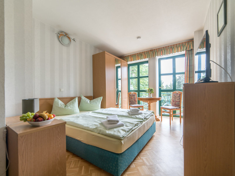 - Doppelzimmer (DZX1), Doppelzimmer, Nichtraucherzimmer, im Hauptgebäude, im Nebengebäude, ca. 26 - 26 m², Gesamtanzahl der Räume in diesem Zimmertyp: 1, Aufteilung wie folgt: kombiniertes Wohn-/Schlafzimmer, 1 Doppelbett (150x200cm), Heizung: individuell regelbar, Fußboden: Laminat, Schreibtisch, Minibar, Telefon, Internet: WLAN/WiFi, Fernseher: Sat-TV, Reinigungsservice, Dusche, WC, Föhn, Kosmetikspiegel, Balkon: mit Sitzgelegenheit