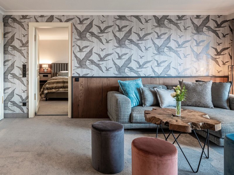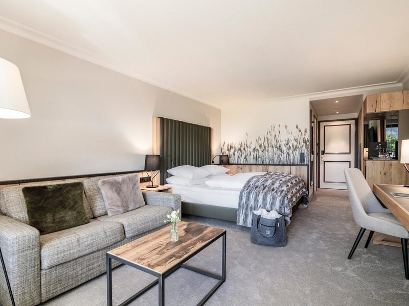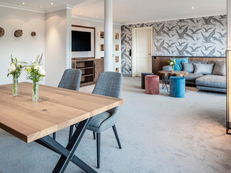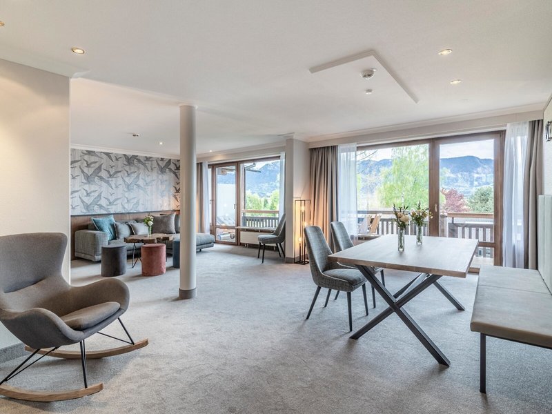 - Alpenhof Suite (T1D), Suite, ca. 100 m², Gesamtanzahl der Räume in diesem Zimmertyp: 2, Wohnzimmer, Anzahl Schlafzimmer im Zimmertyp:1, 1 Doppelbett (180x200cm), Klimaanlage: individuell regelbar, Heizung: individuell regelbar, Safe: ohne Gebühr, Sitzecke, Schreibtisch, Esstisch, Minibar: ohne Gebühr, Internet: WLAN/WiFi: ohne Gebühr, Fernseher: Flatscreen, Badewanne, separate Dusche, WC, Föhn, Balkon: mit Sitzgelegenheit