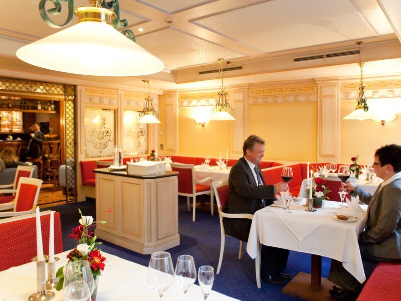 - Restaurant „Rote Stube“: Küche: international, landestypisch, mediterran, regional, glutenfreie Gerichte, Kindermenü, leichte Gerichte, saisonale Gerichte, vegetarische Gerichte, vegane Gerichte, à la carte, Reservierung notwendig, täglich 18:00 Uhr - 22:00 Uhr, Kinderhochstuhl, angemessene Kleidung erwünscht