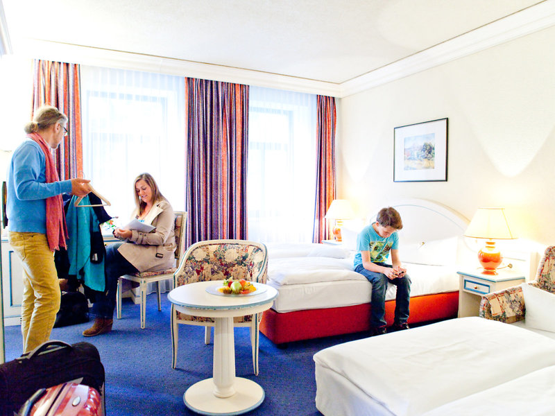- DZ, Komfort (DZX1), Doppelzimmer, Nichtraucherzimmer, Blick auf Nebenstraße oder Innenhof, ca. 25 - 28 m², letzte Komplettrenovierung 1997, letzte Teilrenovierung 2013, Gesamtanzahl der Räume in diesem Zimmertyp: 1, 2 Einzelbetten (90x200cm), 1 Doppelbett (180x200cm), 1 Zustellbett, Babybett: ohne Gebühr, Reservierung notwendig, Heizung: individuell regelbar, Fußboden: Teppichboden, Sitzecke, Schreibtisch, Minibar: Softdrinks: gegen Gebühr, Wasser: gegen Gebühr, alkoholische Getränke: gegen Gebühr, Snacks: gegen Gebühr, Minibarauffüllung: täglich 24 Stunden, Telefon, Internet: WLAN/WiFi: ohne Gebühr, Fernseher: Flatscreen, Kabel-TV, Radio, Roomservice: 07:00 Uhr - 22:00 Uhr, gegen Gebühr, Reinigungsservice: täglich, ohne Gebühr, Dusche, WC, Bademantel: gegen Gebühr, Föhn