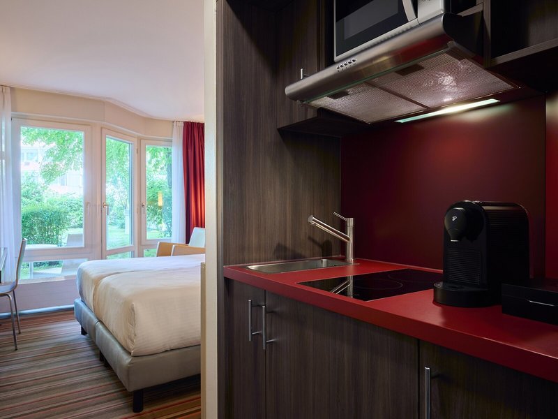 So wohnen Sie: In den Zimmern sind eine Küche und ein Badezimmer vorhanden, für das richtige Raumklima sorgt eine individuell steuerbare Heizung. Ein Balkon gehört zur Standardausstattung der meisten Zimmer. Die mit Teppichböden ausgestatteten Zimmer verfügen über ein Doppelbett und ein Sofabett. Zustellbetten können angefordert werden. Außerdem sind ein Safe, eine Minibar und ein Schreibtisch verfügbar. Es gibt eine umfassend ausgestattete Kochnische mit einem Kühlschrank, einem Minikühlschrank, einer Mikrowelle und einer Tee-/Kaffeemaschine. Hinzu kommen eine Waschmaschine und ein Bügelset. Besten Urlaubskomfort bieten ein Telefon mit Direktwahl, ein TV-Gerät mit Satelliten-/Kabelempfang, ein Radio und WiFi. Im Badezimmer, mit einer Dusche und einer Badewanne ausgestattet, stehen für die Gäste ein Haartrockner und ein Telefon bereit. Als Besonderheit genießen die Gäste in den Badezimmern Kosmetikartikel und eine Auswahl an Handtüchern. Buchbar sind rollstuhlgerechte Zimmer. Das Apartmenthotel bietet 98 Nichtraucher- und Raucherzimmer.