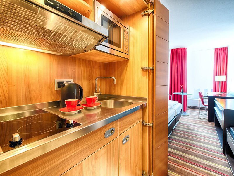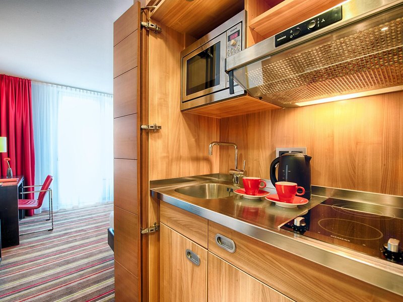 Vaše ubytovanie: Izby majú kuchyňu a kúpeľňu a individuálne nastaviteľné kúrenie zabezpečuje príjemnú teplotu v miestnosti. Väčšina izieb má aj balkón. Izby s kobercami sú vybavené manželskou posteľou a rozkladacou pohovkou. Prístelky sú k dispozícii na požiadanie. K dispozícii je aj trezor, minibar a písací stôl. Plne vybavená kuchynka zahŕňa chladničku, minichladničku, mikrovlnnú rúru a príslušenstvo na prípravu čaju/kávy. K dispozícii je aj práčka a žehliace potreby. Pre vaše pohodlie má každá izba telefón s priamou voľbou, TV so satelitným/káblovým príjmom, rádio a Wi-Fi pripojenie. Kúpeľňa je vybavená sprchovacím kútom a vaňou, sušičom vlasov a telefónom. Hostia ocenia bezplatné toaletné potreby a výber uterákov v kúpeľniach. K dispozícii sú bezbariérové izby. Apartmánový hotel ponúka 98 fajčiarskych a nefajčiarskych izieb.