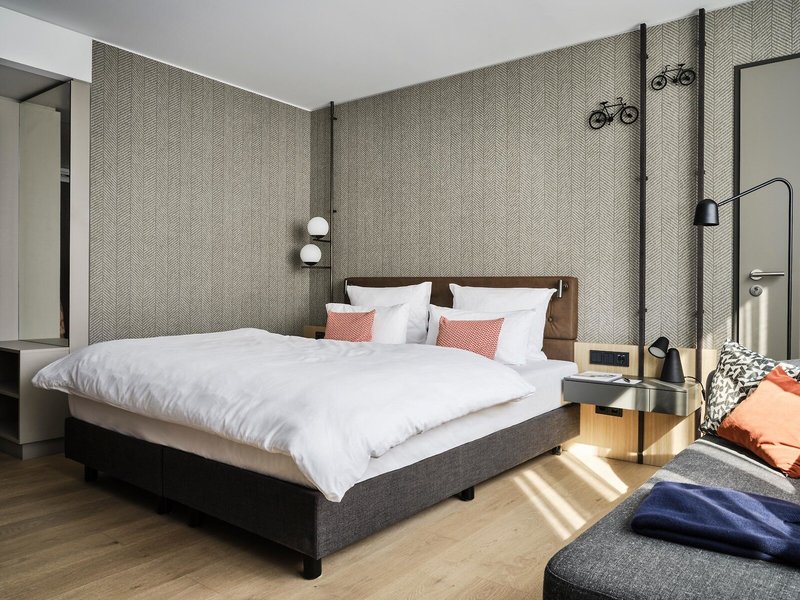 - Comfort Zimmer (DZX1), Doppelzimmer, Nichtraucherzimmer, Neubau, Straßenseite, Stadtblick, Blick auf urbane Stadt Münster, ca. 28 m², letzte Komplettrenovierung 2021, letzte Teilrenovierung 2021, Gesamtanzahl der Räume in diesem Zimmertyp: 1, Aufteilung wie folgt: kombiniertes Wohn-/Schlafzimmer, 1 Doppelbett (180x210cm), Klimaanlage: individuell regelbar, kalt, warm, Fußboden: Parkett, Safe: ohne Gebühr, Sofa, Schreibtisch, Kaffeemaschine, Kaffee-/Teezubereiter, Minibar: gegen Gebühr, Softdrinks: gegen Gebühr, Wasser: gegen Gebühr, alkoholische Getränke: gegen Gebühr, Snacks: gegen Gebühr, Minibarauffüllung: täglich, Telefon, Internet: WLAN/WiFi: ohne Gebühr, Fernseher: Flatscreen, im Schlafzimmer, deutsches Programm, Sat-TV, Radio, Roomservice: gegen Gebühr, Reinigungsservice, Dusche, WC, Föhn, Kosmetikspiegel