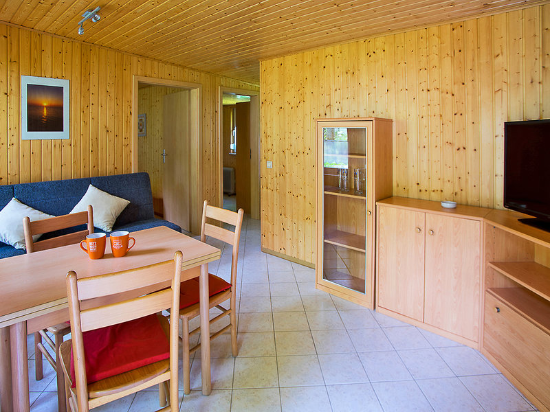 Ferienhäuser (HA4, ca. 48 qm), kombinierter Wohn-/Schlafraum, 2 separate Schlafzimmer, Küchenzeile, TV, Sitzecke. Dusche, WC. Terrasse. Max. 4E