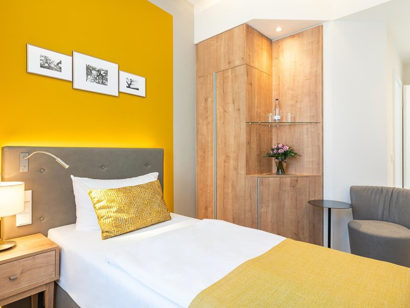 - Jednolôžková izba Sandpiper Villa Strandschloss (EZX2), jednolôžková izba, v prístavbe, strana ulice, výhľad na mesto, cca 16 - 18 m², posledná kompletná rekonštrukcia v roku 2021, celkový počet izieb v tomto type izby: 1, rozloženie takto. : kombinovaná obývačka/spálňa, 1 jednolôžko (90x200cm), kúrenie: centrálne ovládané, podlaha: parkety, trezor: bez poplatku, písací stôl, telefón, Internet: WLAN/WiFi: bez poplatku, TV: satelitná TV, sprcha, WC, fén