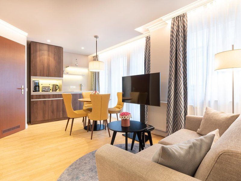 - Appartement Strandgut Villa Strandschloss (APX1), Ferienwohnung, im Nebengebäude, Landseite, Stadtblick, ca. 38 - 42 m², letzte Teilrenovierung 2023, Gesamtanzahl der Räume in diesem Zimmertyp: 2, Aufteilung wie folgt: kombiniertes Wohn-/Schlafzimmer, 1 Schlafzimmer, 1 Doppelbett (90x200cm), 1 Zustellbett, Babybett: ohne Gebühr, Anfrage notwendig, Heizung: individuell regelbar, Fußboden: Laminat, Safe: ohne Gebühr, Kühlschrank, Kochplatte, Kaffeemaschine, Wasserkocher, Toaster, Esstisch, Telefon, Internet: WLAN/WiFi: ohne Gebühr, Fernseher: Flatscreen, Dusche, WC, Föhn