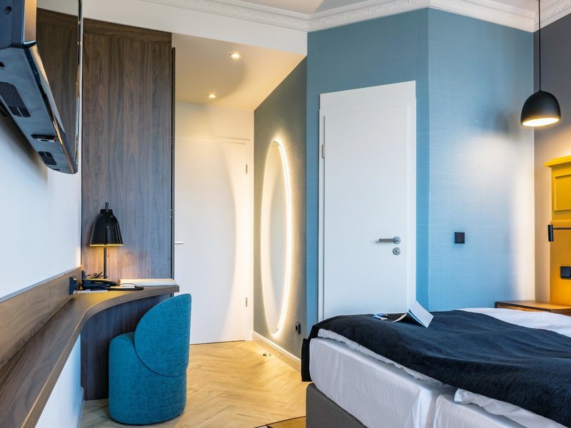 - Einzelzimmer Strandläufer Villa Strandschloss (EZX2), Einzelzimmer, im Nebengebäude, Straßenseite, Stadtblick, ca. 16 - 18 m², letzte Komplettrenovierung 2021, Gesamtanzahl der Räume in diesem Zimmertyp: 1, Aufteilung wie folgt: kombiniertes Wohn-/Schlafzimmer, 1 Einzelbett (90x200cm), Heizung: zentral gesteuert, Fußboden: Parkett, Safe: ohne Gebühr, Schreibtisch, Telefon, Internet: WLAN/WiFi: ohne Gebühr, Fernseher: Sat-TV, Dusche, WC, Föhn