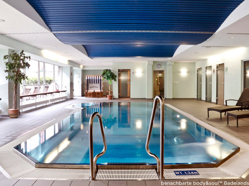 - Pool „Badelandschaft-im Nachbarhotel (Gebühr)“: gegen Gebühr, Indoor, beheizbar, im Wellnessbereich, Liegen, Sonnenschirme: ohne Gebühr