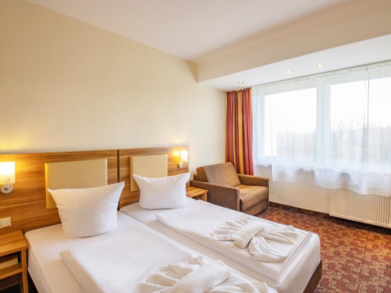- Jednolôžková izba (EZX1), jednolôžková izba, nefajčiarska izba, v hlavnej budove, cca 10 - 12 m², celkový počet izieb v tomto type izby: 1, rozloženie: kombinovaná obývacia izba/spálňa, 1 spálňa, 1 posteľ queen size (160x200cm), kúrenie : individuálne nastaviteľné, podlaha: koberec, posedenie, písací stôl, Internet: WLAN/WiFi: zadarmo, TV: v spálni, sprcha, WC, fén