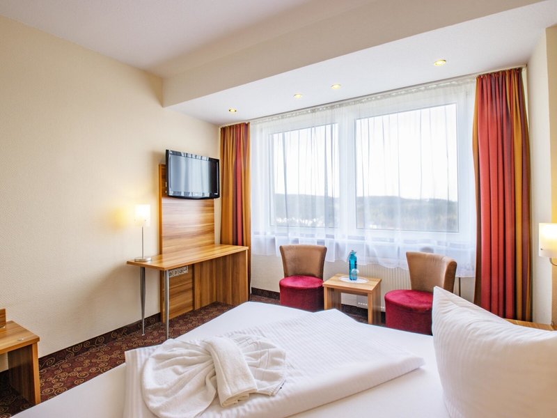 Poloha a okolie Hotel sa nachádza na idylickom mieste v lese a na okraji Friedrichsroda, uprostred prírodného pokoja v nadmorskej výške 477 m. Letisko Erfurt/Weimar je vzdialené cca 41 km, Friedrichroda cca 8 km. Najbližšia autobusová zastávka Finsterbergen je vzdialená cca 1,2 km. Milovníci golfu môžu navštíviť golfové ihrisko Th. Výletné ciele Marienglashöhle a Mini-a-thür - Park miniatúr sú vzdialené cca 10,3 km a cca 29,1 km.