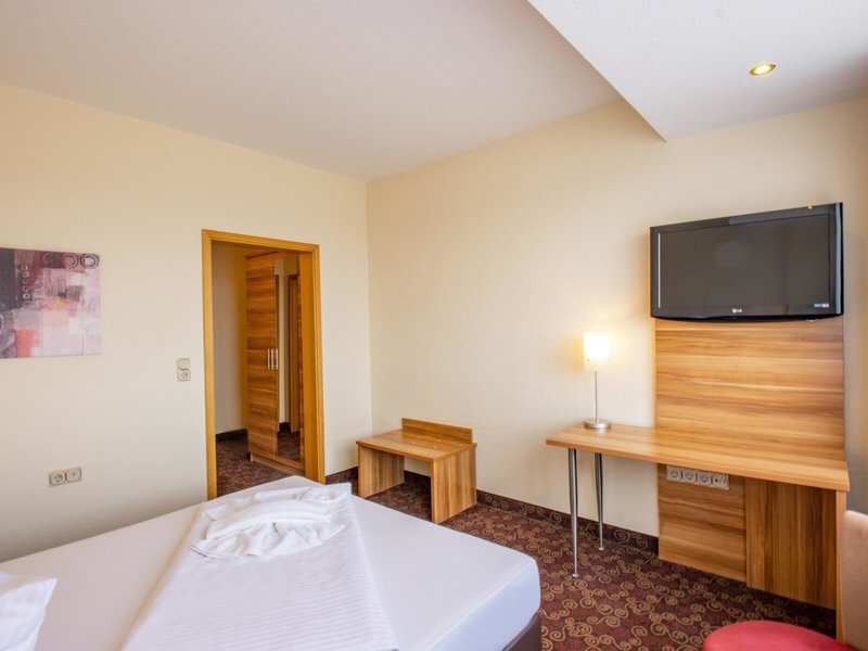 - Einzelzimmer (EZX1), Einzelzimmer, Nichtraucherzimmer, im Hauptgebäude, ca. 10 - 12 m², Gesamtanzahl der Räume in diesem Zimmertyp: 1, Aufteilung wie folgt: kombiniertes Wohn-/Schlafzimmer, 1 Schlafzimmer, 1 Queen Size Bett (160x200cm), Heizung: individuell regelbar, Fußboden: Teppichboden, Sitzecke, Schreibtisch, Internet: WLAN/WiFi: ohne Gebühr, Fernseher: im Schlafzimmer, Dusche, WC, Föhn