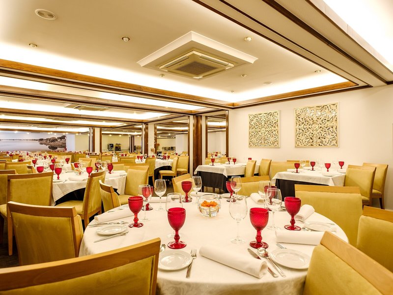 Essen & Trinken: Die gastronomischen Einrichtungen umfassen ein Restaurant, ein Café und eine Bar. Das Haus bietet als buchbare Verpflegungsleistungen Halbpension und Vollpension. Als Mahlzeiten können Frühstück, Mittagessen und Abendessen gewählt werden. Diätgerichte und Kindermenüs werden auf Wunsch zubereitet. Darüber hinaus stellt die Unterbringung spezielle Verpflegungsangebote bereit.