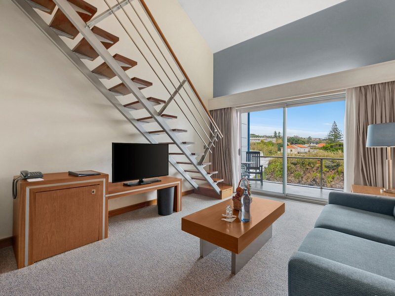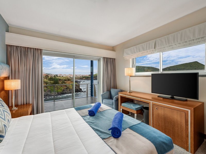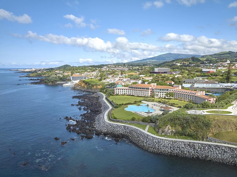 Lage & Umgebung Das Hotel genießt eine tolle Lage an der westlichen Seite von Angra do Heroísmo am Atlantik. Es befindet sich in dem Badebereich Silveira, umringt von dem Krater Monte Brasil, der über der ganzen Bucht thront. Vom Hotel aus hat man eine atemberaubende Aussicht aufs Meer, auch das Grün der Natur harmonisiert mit dem Blick. Vom Hotel aus erreicht man nach rund 15 Gehminuten das historische Zentrum von Angra do Heroísmo, das seit 1983 zum UNESCO-Weltkulturerbe gehört. Die Architektur des Hotels passt sich harmonisch in die umliegende Landschaft ein, hier kann man in der Ruhe und Schönheit ausspannen. In unmittelbarer Umgebung gibt es Anbindungen an die öffentlichen Verkehrsmittel und einen Busbahnhof sowie Bars. Nach etwa 15 Gehminuten gelangt man zu den Einkaufsmöglichkeiten von Angra do Heroísmo.