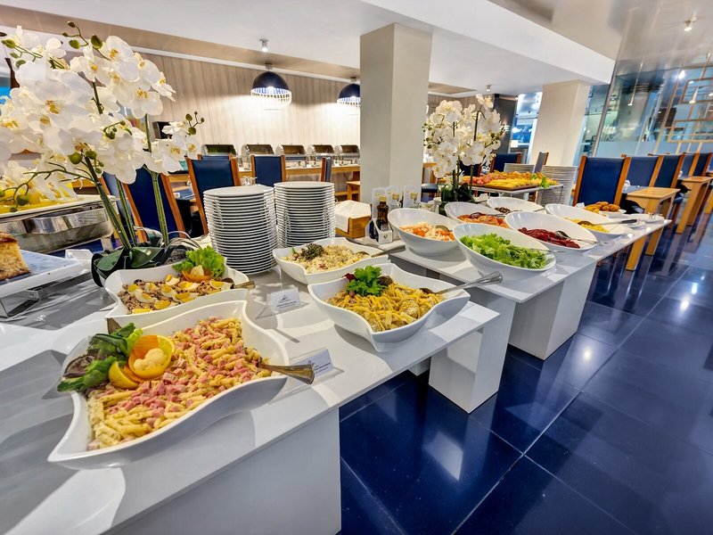Essen & Trinken: Die gastronomischen Einrichtungen umfassen einen Speiseraum, einen Frühstückssaal, ein Café und eine Bar. Verschiedene Spezialitäten erwarten die Gäste in einem Nichtraucherrestaurant mit Klimaanlage. Das Hotel bietet als buchbare Verpflegungsleistungen Übernachtung inkl. Frühstück, Halbpension und Vollpension. Ein kontinentales Buffetfrühstück garantiert einen guten Start in den Tag, zum Mittagessen und Abendessen stehen Gerichte à la carte zur Auswahl. Menükreationen können zum Mittagessen bestellt werden. Diätgerichte, vegetarische Gerichte und Kindermenüs werden auf Wunsch zubereitet. Darüber hinaus stellt das Haus spezielle Verpflegungsangebote bereit.