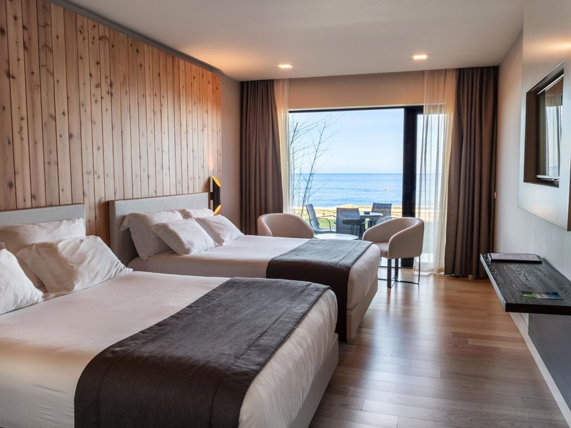 - Family Sea View (DZM3), Familienzimmer, Mindestalter im Zimmer: 18 Jahre, im Hauptgebäude, Meerseite, Meerblick, ca. 30 m², Gesamtanzahl der Räume in diesem Zimmertyp: 1, Aufteilung wie folgt: 1 Schlafzimmer, 2 Queen Size Betten (160x200cm), Babybett: ohne Gebühr, Anfrage nicht notwendig, Reservierung notwendig, Klimaanlage: ohne Gebühr, individuell regelbar, kalt, warm, Fußboden: PVC, Safe: ohne Gebühr, Schreibtisch, Nespressomaschine, Wasserkocher, Minibar: ohne Gebühr, Telefon, Internet: WLAN/WiFi: ohne Gebühr, Fernseher: Flatscreen, im Schlafzimmer, Sat-TV, Roomservice: täglich, gegen Gebühr, Reinigungsservice: täglich, ohne Gebühr, Badewanne, Bademantel: ohne Gebühr, Slipper: ohne Gebühr, Föhn, Kosmetikspiegel, Terrasse: mit Sitzgelegenheit
