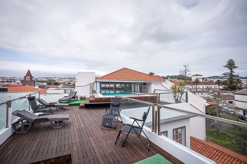 - Panoramatická strešná slnečná terasa s čiastočne krytým bazénom (ležadlá a osušky zdarma)