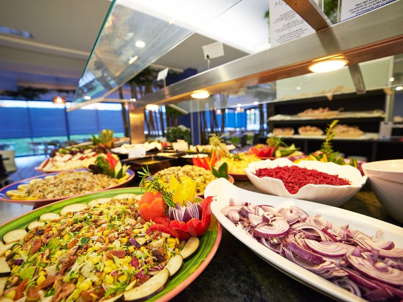 Essen & Trinken: Die gastronomischen Einrichtungen umfassen einen Speiseraum und eine Bar. Verschiedene Spezialitäten erwarten die Gäste in einem Nichtraucherrestaurant mit Klimaanlage. Die Unterbringung bietet als buchbare Verpflegungsleistungen Übernachtung inkl. Frühstück, Halbpension, Vollpension und All-Inclusive. Ein leckeres und reichhaltiges Buffet erwartet die Gäste zum Frühstück, Mittag- und Abendessen. Bei Bedarf werden auch Kindermenüs zubereitet. Darüber hinaus stellt das Apartmenthotel Snacks bereit. Das Hotel führt ein Sortiment alkoholischer und alkoholfreier Getränke.