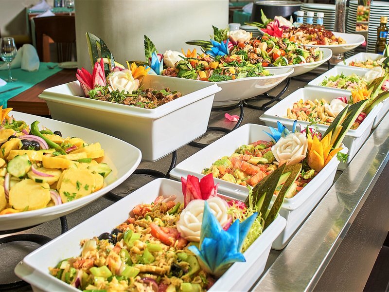 Jedlo a nápoje: K dispozícii je jedáleň, raňajková miestnosť, kaviareň a bar. Hostia si môžu vybrať z troch klimatizovaných reštaurácií, pričom každá má detské stoličky a vyhradené fajčiarske a nefajčiarske priestory. Osviežujúce nápoje v plážovom bare zaručujú relaxačný pobyt. Hotel ponúka ubytovanie s raňajkami, polpenziu a plnú penziu. Na raňajky a večeru je k dispozícii bohatý bufet. Na obed a večeru sú k dispozícii rôzne jedlá à la carte. Na požiadanie je možné pripraviť diétne a detské menu. Hotel ponúka aj špeciálne cateringové služby. K dispozícii je výber nealkoholických nápojov.