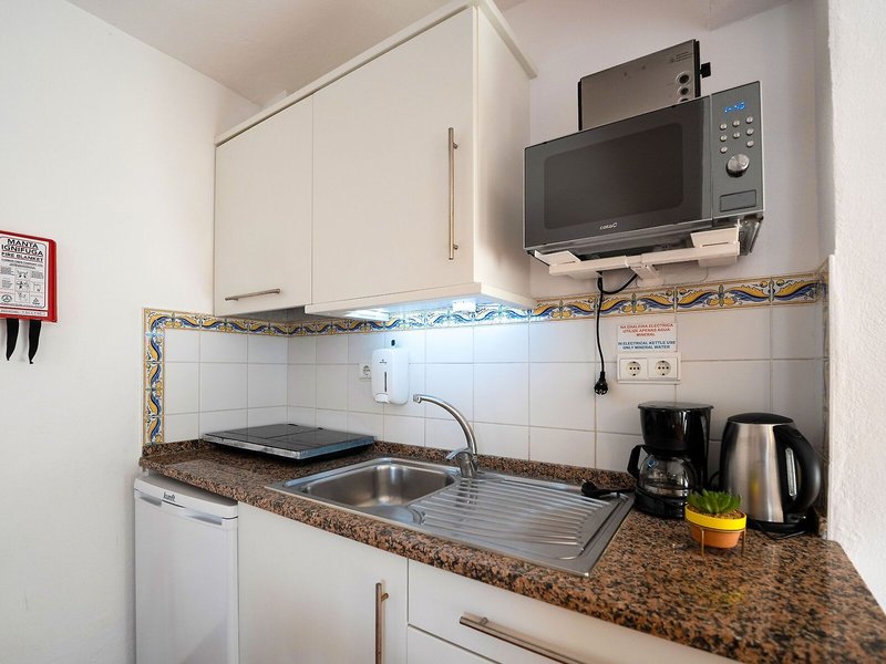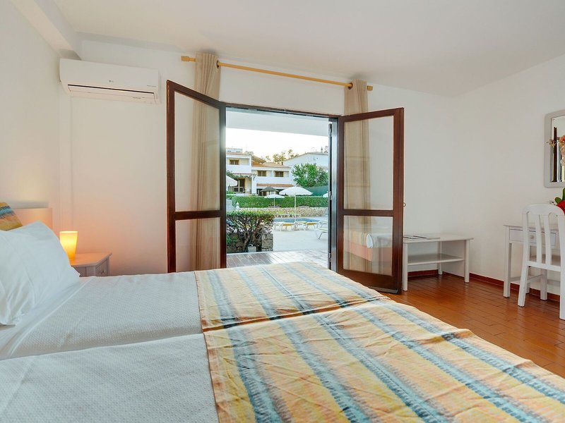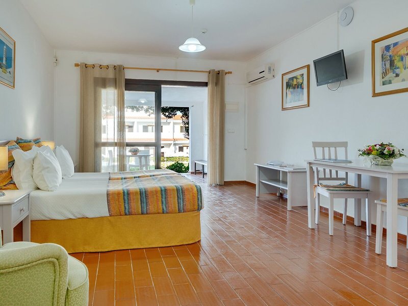 - Studio (STX1), Appartement, Gartenseite, ca. 32 - 34 m², 2 Einzelbetten, Klimaanlage: individuell regelbar, kalt, Fußboden: Fliesenboden, Safe, Kochnische, Kühlschrank, Mikrowelle, Telefon, Internet: WLAN/WiFi, Fernseher: Sat-TV, Reinigungsservice, Badewanne oder Dusche, WC, Föhn, Balkon oder Terrasse