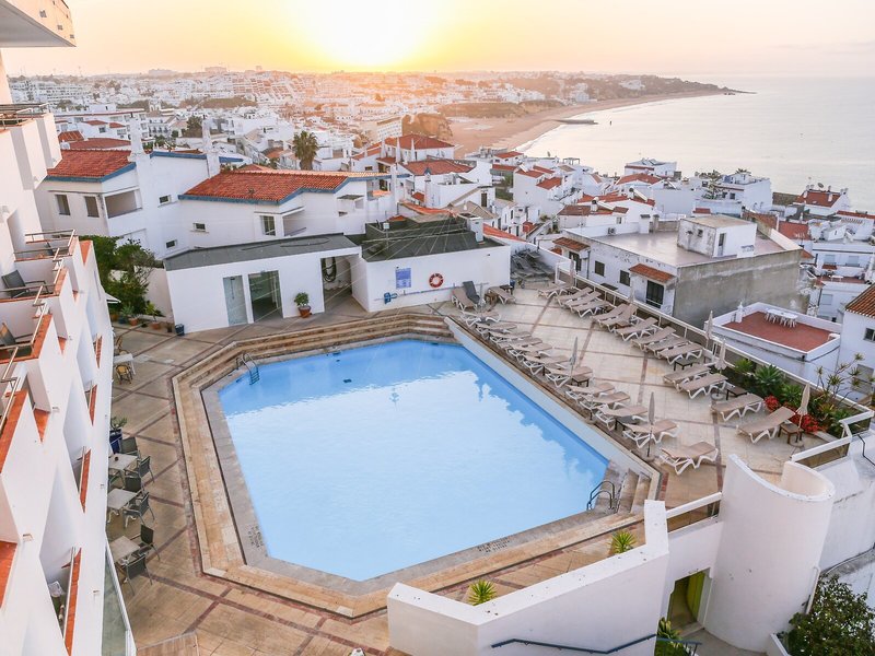 Lage & Umgebung Das zentral in der touristischen Ortschaft Albufeira gelegene Hotel ist nur etwa 10 Gehminuten vom Sandstrand entfernt. Das Stadtzentrum mit Läden, Boutiquen, Bars, Diskotheken und Restaurants ist bequem zu Fuß in ungefähr 15 min zu erreichen. Eine Anbindung an öffentliche Verkehrsmittel befindet sich direkt am Hotel.