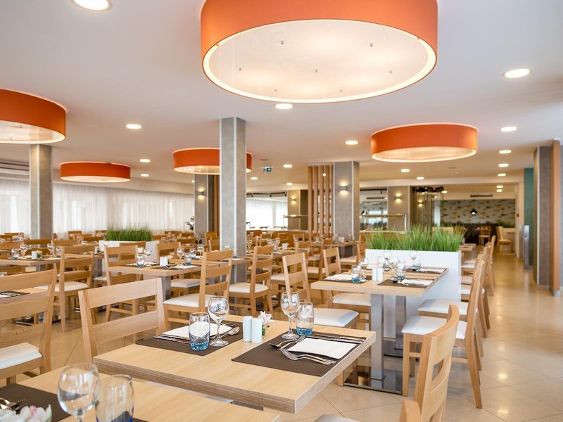 Essen & Trinken: Die Gäste werden im Buffetrestaurant kulinarisch verwöhnt. Das Hotel bietet als buchbare Verpflegungsleistungen Übernachtung inkl. Frühstück, Halbpension und Vollpension. Ein reichhaltiges Frühstücksbuffet, Mittagessen und ein vielfältiges Abendbuffet sind lecker und abwechslungsreich gestaltet. Bei Bedarf werden auch Kindermenüs zubereitet. Darüber hinaus stellt das Haus Snacks bereit. Die Unterbringung führt ein Sortiment alkoholischer und alkoholfreier Getränke.