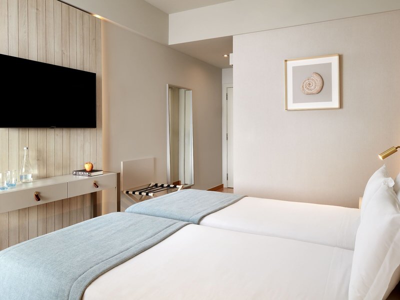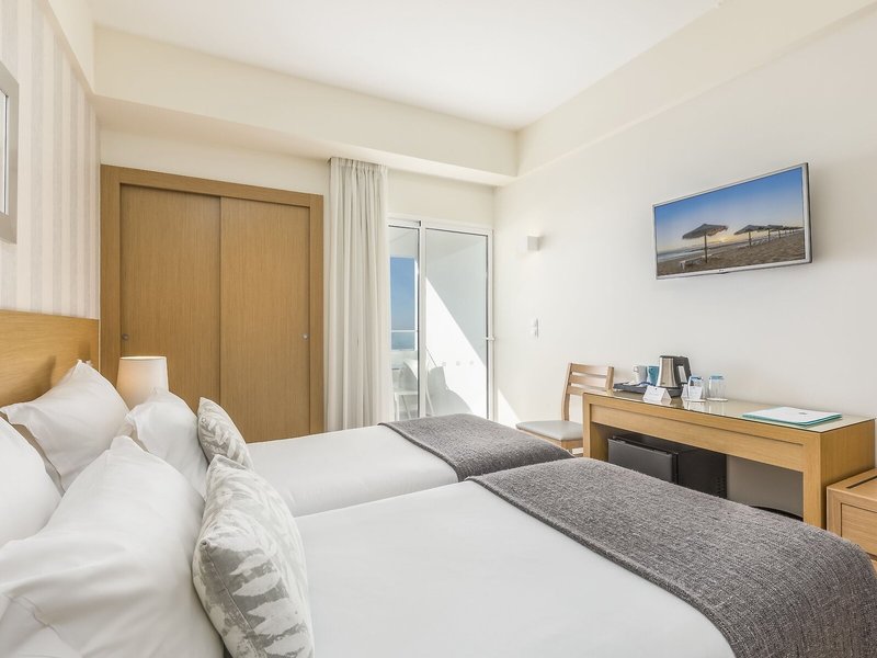 So wohnen Sie: In den Zimmern gibt es eine Klimaanlage und eine zentral steuerbare Heizung. Von Balkon oder Terrasse aus, die zur Standardeinrichtung der meisten Zimmer gehören, haben die Gäste einen schönen Ausblick auf das Meer. Die Zimmer verfügen über ein Doppelbett oder ein Sofabett. Zustellbetten können angefordert werden. Außerdem sind ein Safe und eine Minibar verfügbar. Eine Tee-/Kaffeemaschine zählt ebenfalls zur Standardeinrichtung. Ein Bügelset ist für den zusätzlichen Komfort der Gäste verfügbar. Darüber hinaus sind ein Telefon mit Direktwahl, ein TV-Gerät mit Satelliten-/Kabelempfang und WiFi (ohne Gebühr) vorhanden. Im Badezimmer, ausgestattet mit einer Dusche und einer Badewanne, sind ein Haartrockner und ein Telefon vorhanden. Für besonderen Komfort in den Badezimmern sorgen Kosmetikartikel. Buchbar sind rollstuhlgerechte Zimmer. Für Eltern mit Kindern stehen Familienzimmer zur Verfügung.