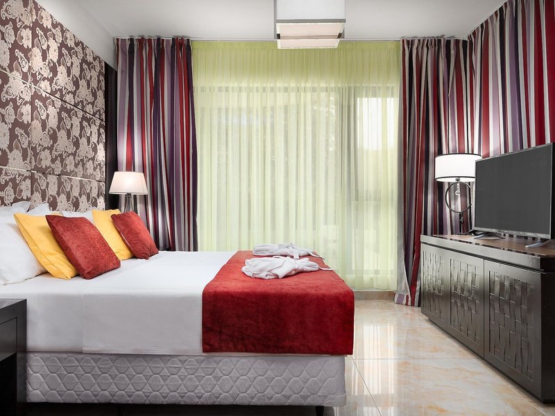 Vaše ubytovanie: Klimatizácia a kúrenie zabezpečujú príjemnú teplotu v izbe. Hostia si môžu oddýchnuť na balkóne alebo súkromnej terase väčšiny izieb a vychutnať si výhľad na more. Izby sú vybavené manželskou posteľou alebo rozkladacou pohovkou. Prístelky sú k dispozícii na požiadanie. K dispozícii je aj trezor a písací stôl. K dispozícii je plne vybavená kuchynka s chladničkou, sporákom, mikrovlnnou rúrou a zariadením na prípravu čaju/kávy. Pre vaše pohodlie je k dispozícii telefón s priamou voľbou, TV so satelitným/káblovým príjmom a bezplatné Wi-Fi pripojenie. Kúpeľne majú sprchovací kút a vaňu. Pre vaše každodenné potreby sú k dispozícii sušič vlasov, kozmetické zrkadlo a telefón. Ako špeciálny doplnok nájdu hostia v kúpeľniach bezplatné toaletné potreby a výber uterákov. K dispozícii sú bezbariérové izby. Pre rodiny s deťmi sú k dispozícii rodinné izby.