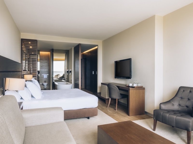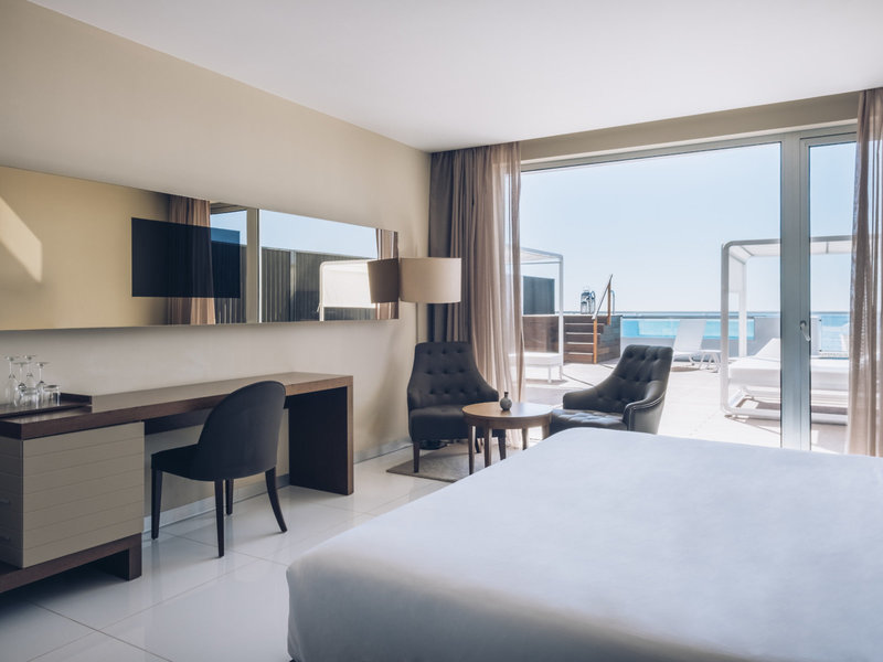 - Suita Sea View Private Pool Superior (SUM1), Dvojlôžková izba, Nefajčiarska izba, v hlavnej budove, morská strana, výhľad na more, cca. 56 m², posledná kompletná rekonštrukcia v roku 2014, celkový počet izieb v tomto type izby: 1, dispozičné riešenie: kombinovaná obývačka/spálňa, 1 spálňa, 1 manželská posteľ, 1 rozkladacia pohovka, klimatizácia: individuálne ovládaná, kúrenie: individuálne ovládané, podlaha: dlažba, trezor: zadarmo, pohovka, písací stôl, kávovar, poplatok, minibar: za poplatok: nealkoholické nápoje, minibar: za poplatok, alkoholické nápoje za poplatok 10:00 - 17:00, telefón, internet: WLAN/WiFi: zadarmo, TV: plochá obrazovka, v obývacej časti, v spálni, nemecké kanály, satelitná TV, izbová služba: za poplatok, upratovacia služba, sprcha, vaňa na izbe, samostatné WC, sušič vlasov, terasa: s ležadlami, s posedením, s vlastným bazénom