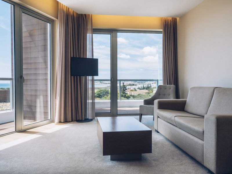 - Suite Sea View Private Pool Superior (SUM1), Doppelzimmer, Nichtraucherzimmer, im Hauptgebäude, Meerseite, Meerblick, ca. 56 m², letzte Komplettrenovierung 2014, Gesamtanzahl der Räume in diesem Zimmertyp: 1, Aufteilung wie folgt: kombiniertes Wohn-/Schlafzimmer, 1 Schlafzimmer, 1 King Size Bett, 1 Schlafsofa, Klimaanlage: individuell regelbar, Heizung: individuell regelbar, Fußboden: Fliesenboden, Safe: ohne Gebühr, Sofa, Schreibtisch, Espressomaschine, Minibar: gegen Gebühr, Softdrinks: gegen Gebühr, alkoholische Getränke: gegen Gebühr, Snacks: gegen Gebühr, Minibarauffüllung: täglich 10:00 Uhr - 17:00 Uhr, Telefon, Internet: WLAN/WiFi: ohne Gebühr, Fernseher: Flatscreen, im Wohnbereich, im Schlafzimmer, deutsches Programm, Sat-TV, Roomservice: gegen Gebühr, Reinigungsservice, Dusche, Badewanne im Zimmer, separates WC, Föhn, Terrasse: mit Liegen, mit Sitzgelegenheit, mit Private Pool