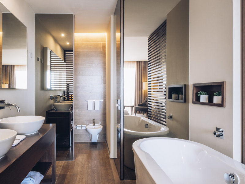 - Junior Suita Garden View (JSX1), dvojlôžková izba, nefajčiarska izba, v hlavnej budove, záhradná strana, výhľad do záhrady, cca. 32 - 34 m², posledná kompletná rekonštrukcia v roku 2014, celkový počet izieb v tomto type izby: 1, rozloženie: 1 spálňa, 1 manželská posteľ, 1 rozkladacia pohovka, klimatizácia: individuálne ovládaná, kúrenie: individuálne ovládané, podlaha: koberec, trezor: zdarma, pohovka, písací stôl, kávovar, minibar: za poplatok, nealkoholické nápoje za poplatok, alkoholické nápoje za poplatok: 1 za poplatok :00 - 17:00, telefón, internet: WLAN/WiFi: zadarmo, TV: plochá obrazovka, v spálni, nemecké kanály, satelitná TV, izbová služba: za poplatok, upratovacia služba, sprcha, vaňa na izbe, samostatné WC, fén, balkón alebo terasa: s posedením