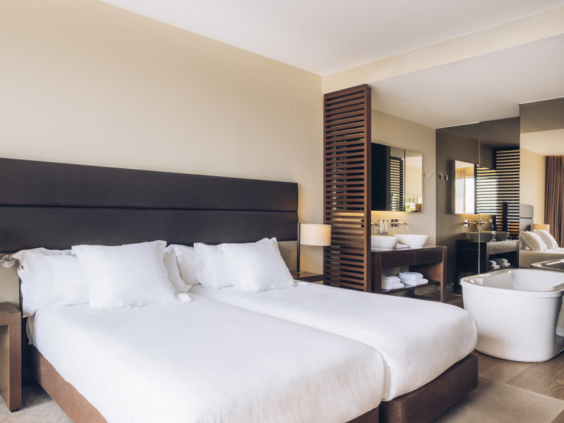 - Double Pool View (DZX4), Nichtraucherzimmer, Poolseite, Gartenseite, Poolblick, Gartenblick, ca. 32 - 34 m², letzte Komplettrenovierung 2014, Gesamtanzahl der Räume in diesem Zimmertyp: 1, Aufteilung wie folgt: 1 Schlafzimmer, Klimaanlage: individuell regelbar, Heizung: individuell regelbar, Fußboden: Teppichboden, Safe: ohne Gebühr, Schreibtisch, Espressomaschine, Minibar: gegen Gebühr, Softdrinks: gegen Gebühr, alkoholische Getränke: gegen Gebühr, Snacks: gegen Gebühr, Minibarauffüllung: täglich 10:00 Uhr - 17:00 Uhr, Telefon, Internet: WLAN/WiFi: ohne Gebühr, Fernseher: Flatscreen, im Schlafzimmer, deutsches Programm, Sat-TV, Roomservice: gegen Gebühr, Reinigungsservice, Dusche, Badewanne im Zimmer, separates WC, Föhn, Terrasse: mit Sitzgelegenheit