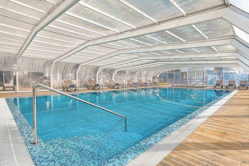 - Bazén so slnečnou terasou (krytý a vyhrievaný od novembra do apríla; ležadlá a slnečníky zdarma, osušky za kauciu)