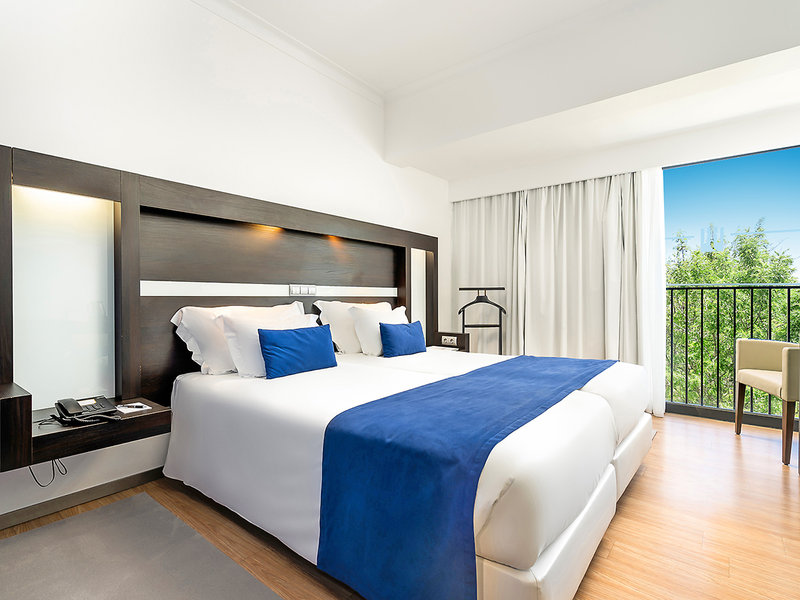 Superior-Doppelzimmer (DMS, ca. 28 qm), Klimaanlage, Minibar (gegen Gebühr), Wasserkocher, Kaffee-/Teezubereiter, TV, WLAN, Safe. Bad/Dusche, WC, Föhn. Balkon, seitlicher Meerblick. Premium-Doppelzimmer mit direktem Meerblick (DZM). Max. 3E