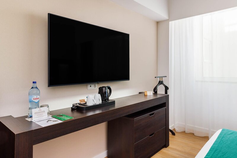 Wohnen: Doppelzimmer (DZ, ca. 19 qm), Klimaanlage, Minibar (gegen Gebühr), Wasserkocher, Kaffee-/Teezubereiter, TV, WLAN, Safe. Bad/Dusche, WC, Föhn. Max. 2E+1K,