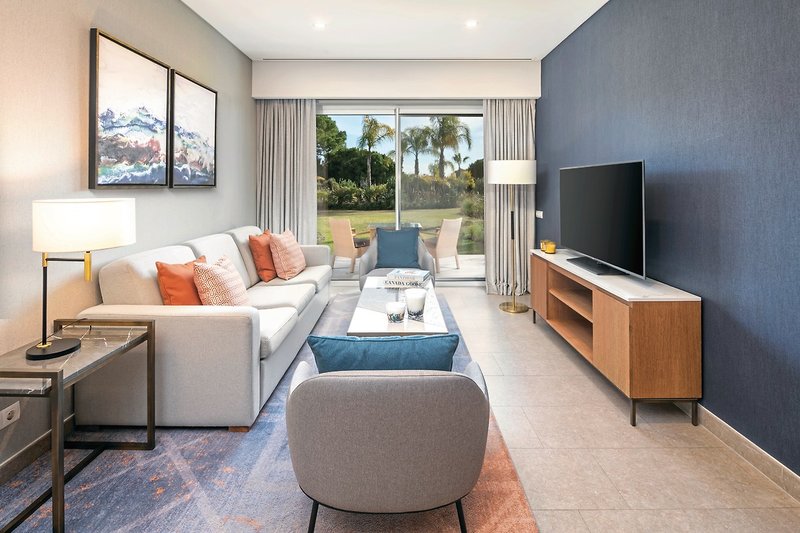 Die Zimmer: Jede der 130 Suiten ist sorgfältig gestaltet, um eine perfekte Kombination aus Komfort und Funktionalität zu bieten. Mit ihrem modernen Design und natürlichen Materialien strahlt der Raum Ruhe und Schlichtheit aus, der ideale Rückzugsort, um sich zu entspannen und neue Energie zu tanken. Alle Suiten verfügen über einen Wohnbereich mit voll ausgestatteter Küche, Balkon oder Terrasse und weitem Blick über die üppigen Gärten und Golfplätze. Zur Ausstattung gehören ein En-Suite-Badezimmer, begehbare Dusche, HD TV, High-Speed Internet, Espressomaschine, Klimaanlage und Safe.