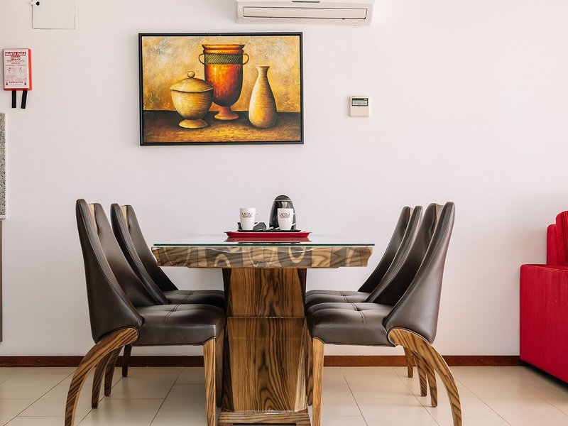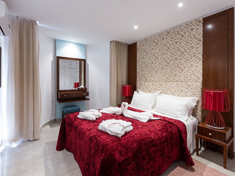 Ubytovanie: Dvojlôžková izba Deluxe (dvojlôžkové postele, terasa): individuálne nastaviteľná klimatizácia, minichladnička (za poplatok). Kuchynský kút. TV, telefón, internet (za poplatok), trezor (za poplatok). Kúpeľňa, fén. Balkón/terasa. Max. 2 dospelí.