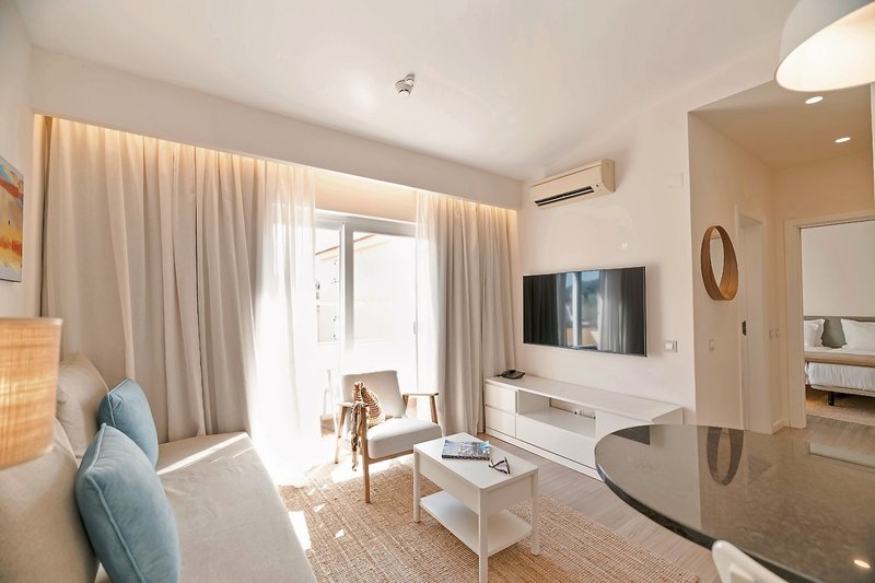 - 61-70 qm, Villa, Superior, 2 separate Schlafzimmer, separater Wohnraum, Twinbett, Doppelbett, Sofabett, Badewanne, Haartrockner, Klimaanlage, Safe, TV, WLAN, Küche, Geschirrspüler, Mikrowelle, Kaffeemaschine, Toaster, Kühlschrank, Balkon oder Terrasse (möbliert)