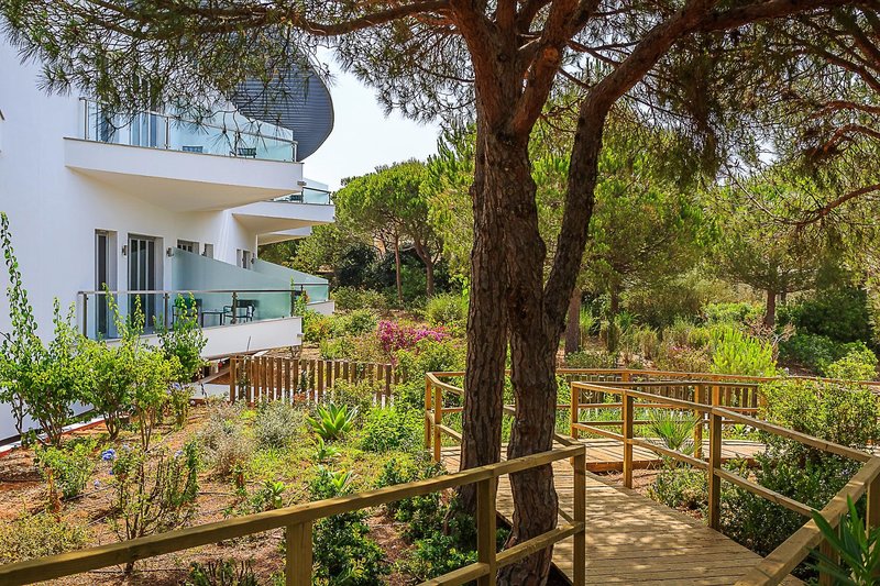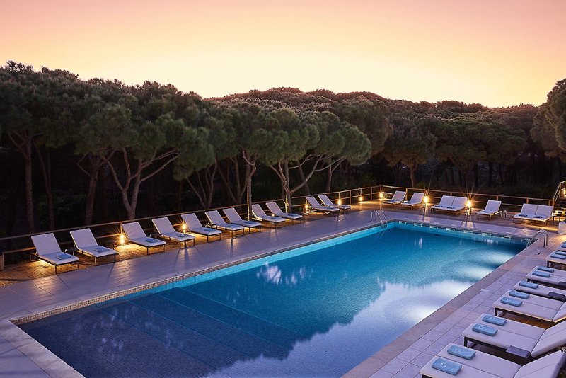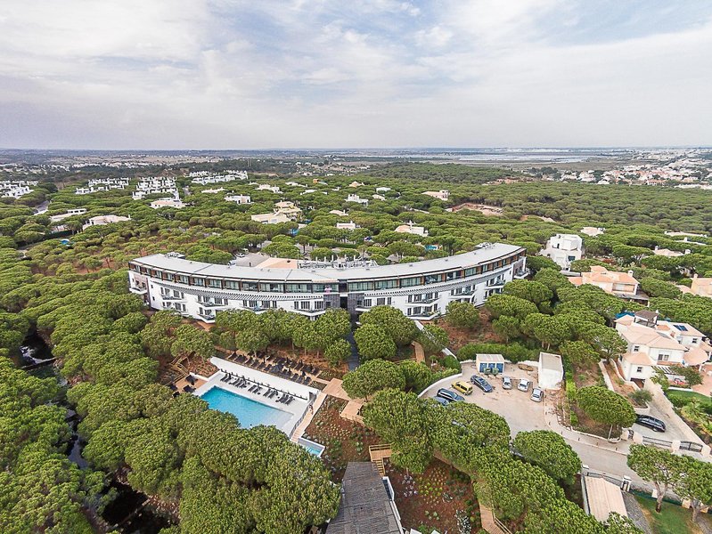 Dieses ansprechende Design-Hotel liegt himmlisch ruhig in der weitläufigen Villensiedlung Praia Verde Resort, die sich in einem schönen, schattenspendenen Pinienwald rund 5 km westlich von Monte Gordo oberhalb des gleichnamigen, kilometerlangen Feinsandstrandes erstreckt. Mit einem Mietwagen, der hier empfehlenswert ist, erreichen Sie binnen weniger Autominuten das Ortszentrum wie auch das nahe Grenzstädtchen Vila Real de Santo António im Osten sowie das schmucke Hafenstädtchen Tavira im Westen. Golfliebhaber finden zudem in einem Radius von nur etwa 10 km die beiden ausgezeichneten Clubs von Monte Rei und Castro Marim. Der helle, lichtdurchflutete Einrichtungsstil des Hauses kombiniert Naturstein- und -hölzer mit stylischen Accessoires und bietet sehr hohen Wohnkomfort. Das gilt nicht zuletzt für die 65 Gästezimmer, die bis auf wenige Doppelzimmer (diese jedoch mit Meerblick) allesamt Suiten sind. Nicht fehlen darf hier auch das für die Hotelmarke typische Restaurant „A Terra“, das Ihnen eine hervorragende Fusionsküche auf Basis regionaler Produkte serviert.