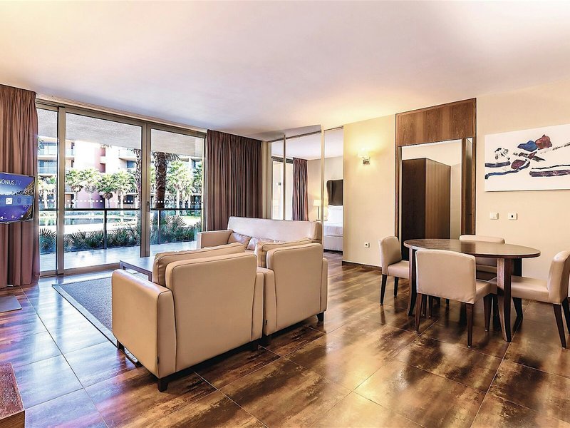 So wohnen Sie: Für angenehmes Raumklima in den Zimmern sorgen eine Klimaanlage und eine Heizung. Die Gäste können den Poolblick von Balkon oder Terrasse genießen. Gemütlich schlafen können die Gäste auf einem Doppelbett. Es gibt separate Schlafzimmer. Außerdem sind ein Safe, eine Minibar und ein Schreibtisch verfügbar. Eine Tee-/Kaffeemaschine zählt ebenfalls zur Standardeinrichtung. Ein Bügelset ist für den zusätzlichen Komfort der Gäste verfügbar. Darüber hinaus sind ein Telefon mit Direktwahl, ein TV-Gerät mit Satelliten-/Kabelempfang und WiFi (ohne Gebühr) vorhanden. Im Badezimmer, ausgestattet mit einer Dusche und einer Badewanne, sind ein Haartrockner und ein Telefon vorhanden. Für besonderen Komfort in den Badezimmern sorgen Kosmetikartikel und eine Auswahl an Handtüchern. Buchbar sind rollstuhlgerechte Zimmer. Für Eltern mit Kindern stehen Familienzimmer zur Verfügung.