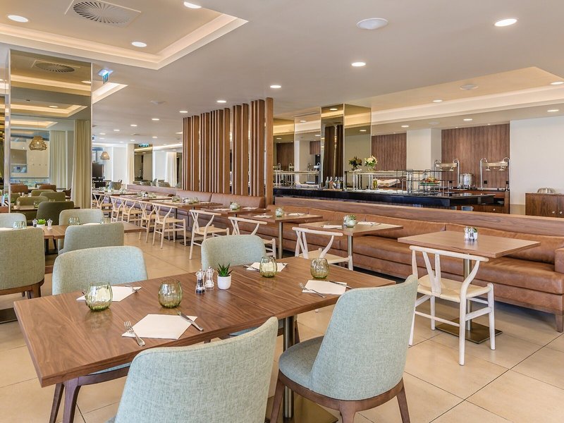 Jedlo a nápoje: Hostia majú na výber z možností stravovania vrátane baru a lobby baru. Jedlá si môžete vychutnať v uvoľnenej atmosfére v jednej z dvoch reštaurácií (bufet a à la carte). Hotel ponúka all inclusive stravovanie. Na raňajky, obed a večeru čaká hostí chutný a pestrý bufet. K dispozícii je aj občerstvenie. Alkoholické a nealkoholické nápoje sú zahrnuté v cene.
