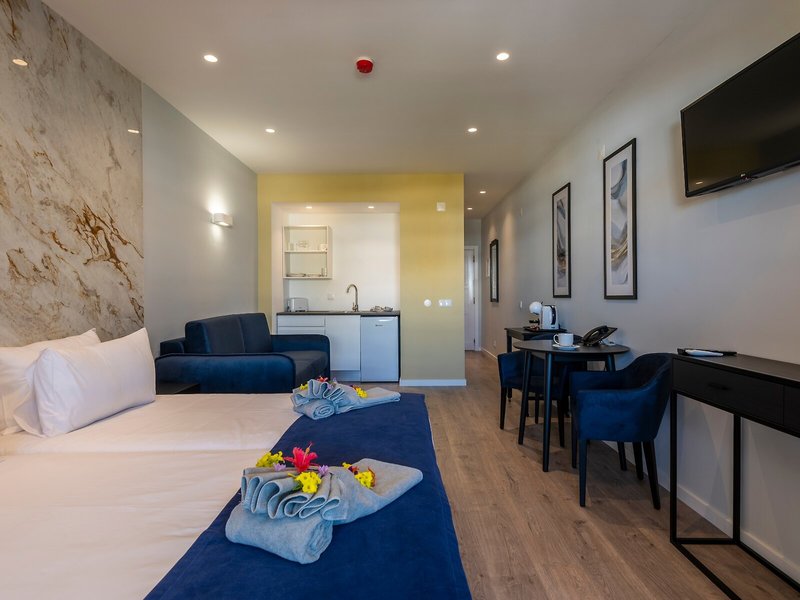 Takto sa ubytujete: Klimatizácia zabezpečuje príjemnú vnútornú klímu v izbách. Balkón je štandardom vo väčšine izieb. Izby majú rozkladaciu pohovku. Prístelky je možné vyžiadať. K dispozícii je aj trezor a minibar. K dispozícii je tiež kuchynka s chladničkou. K dispozícii je aj telefón s priamou voľbou, satelitná TV a WiFi. V kúpeľniach je k dispozícii sušič vlasov. Apartmánový hotel ponúka rodinné a 73 nefajčiarskych izieb.