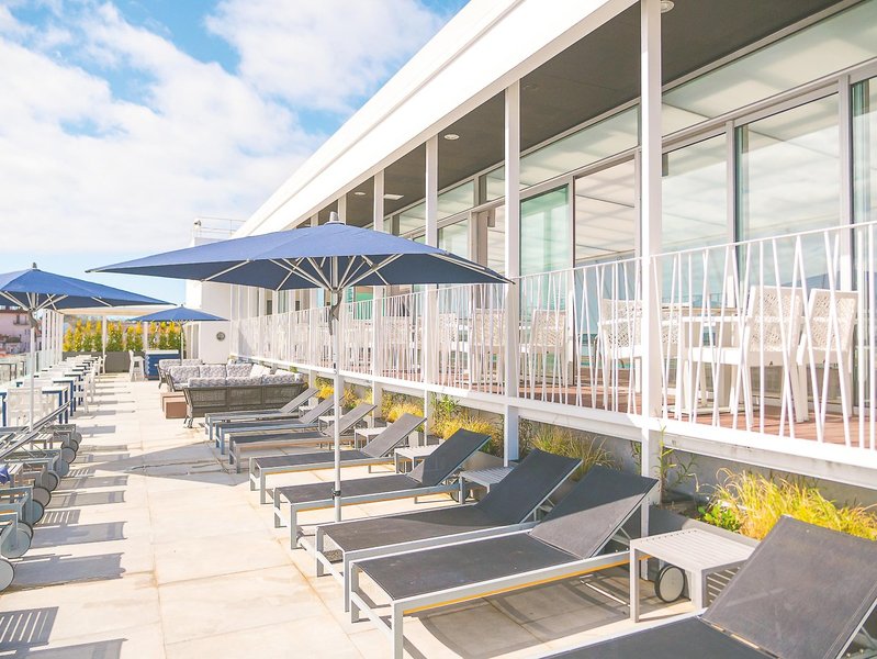 - Strešná slnečná terasa s „Blue Bar“ na koktaily a ľahké občerstvenie (približne od mája do októbra; niekedy cez víkendy s DJskou hudbou)