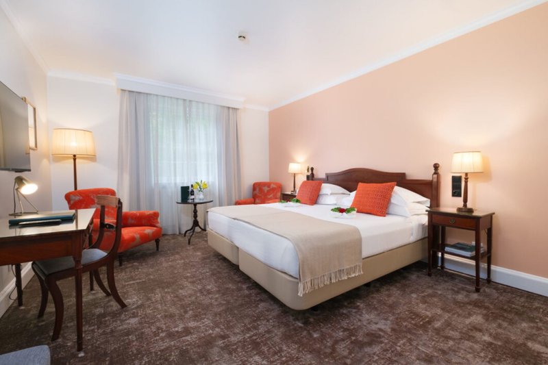 Doppelzimmer: Die Doppelzimmer (D) wurden im Sommer 2023 renoviert und sind. ca. 28 m² groß, liegen im separaten Nebengebäude ("Gardenwing"), der an das Hauptgebäude ("Old House") angrenzt. Zur Ausstattung gehören Bad mit Dusche/WC, Föhn, Schreibtisch, Minibar (gegen Gebühr), Safe (inklusive), Klimaanlage (mit individueller Steuerung, saisonbedingt), Zentralheizung (mit individueller Steuerung, saisonbedingt), Kabel-TV,Wi-Fi (inklusive) und Blick auf den Garten. Die Zimmer liegen im Erdgeschoss oder im ersten Stock. Auch als Doppelzimmer zur Alleinbenutzung im Sommer buchbar (DE) oder als Doppelzimmer Typ I mit einem begrenzten Kontingent zu einem speziellen Preis (DI)