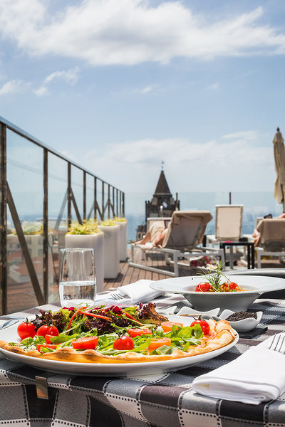 - Nekonečný bazén: vonkajší, morská voda, vyhrievaný, na strešnej terase, ležadlá, slnečníky