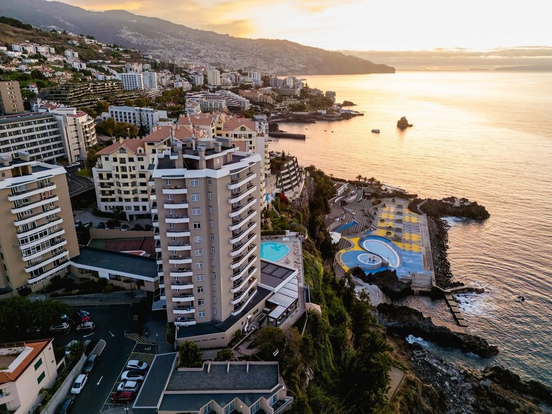 Poloha a okolie Očarujúci hotel sa nachádza uprostred krásnej, udržiavanej zelenej plochy priamo nad Atlantickým oceánom s nádherným výhľadom na záliv Funchal. Dobré autobusové spojenie do centra vzdialeného cca 3,5 km. Na zastávku MHD sa dostanete pešo za pár minút (cca 300 metrov).