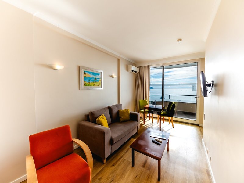 So wohnen Sie: In den Zimmern gibt es eine Klimaanlage und eine Heizung. Die Gäste können den Meerblick von Balkon oder Terrasse genießen. Die Zimmer verfügen über ein Doppelbett und ein Sofabett. Zustellbetten können angefordert werden. Außerdem sind ein Safe, eine Minibar und ein Schreibtisch verfügbar. Eine Kochnische mit einem Kühlschrank, einer Mikrowelle und einer Tee-/Kaffeemaschine ist ebenfalls standardmäßig vorhanden. Für optimalen Komfort sorgen ein Telefon mit Direktwahl, ein TV-Gerät und WiFi. Zu den Vorzügen der Zimmer gehören Hausschuhe. Die Badezimmer sind ausgestattet mit einer Dusche und einer Badewanne. Für den täglichen Gebrauch stehen ein Haartrockner, Bademäntel und ein Telefon zur Verfügung. Als besondere Annehmlichkeit in den Badezimmern bietet sich den Gästen eine Auswahl an Handtüchern. Das Haus bietet Familien- und Nichtraucherzimmer.